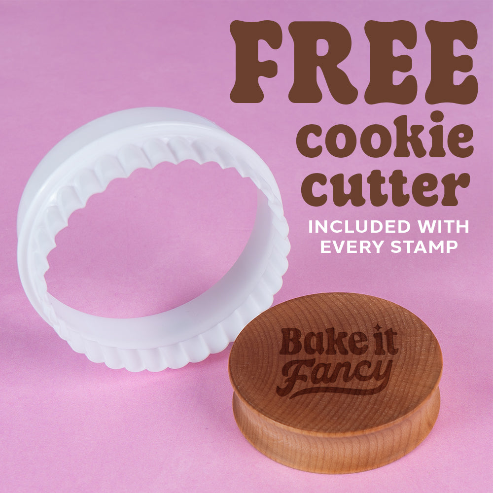 Every stamp comes with a FREE scalloped cookie cutter. It's the exact one we use to get that pretty edge you see in all our cookie photos.