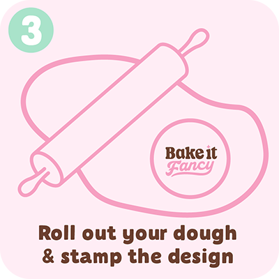 Every stamp comes with a coordinating cookie cutter so you can cut out your cookies.