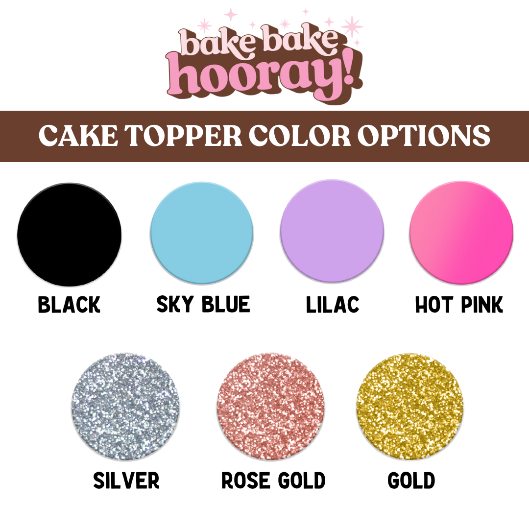 - Made from 1/8" thick, food-safe acrylic, this cake topper is perfect for repeated use across various celebrations.